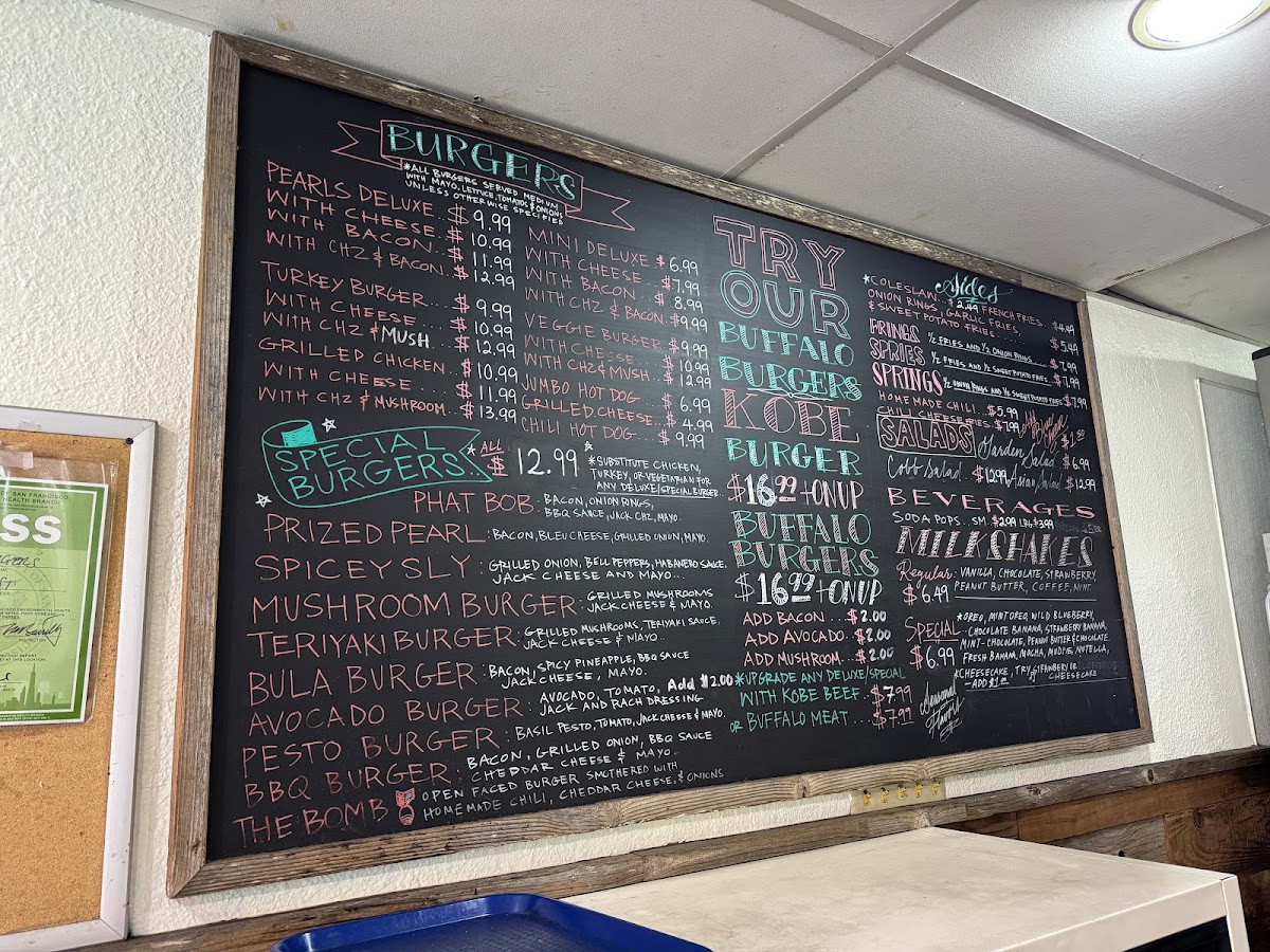 Craving a juicy, flavorful burger? Look no further than the Pearl's Deluxe Burgers Menu. Located in the heart of San Francisco, at 708 Post St, this spot offers an irresistible selection of burgers that are sure to satisfy any appetite. Whether you're in the mood for a classic cheeseburger or something with a bit more flair, there's something for everyone. With fresh ingredients, perfectly seasoned patties, and a variety of toppings, each bite is a delicious experience. Don’t miss out on the perfectly crispy fries and milkshakes that pair perfectly with any meal. Pearl’s Deluxe Burgers is the ultimate destination for anyone looking to indulge in some comfort food with a gourmet twist.